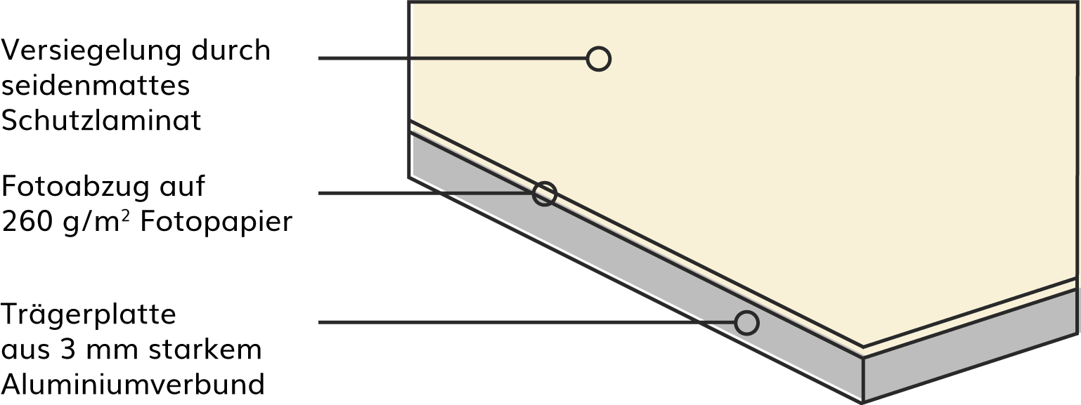 Unser Alu Dibond Fine Art ist eine echte Fotoausbelichtung, kaschiert auf eine 3 mm starke Aluminiumverbundplatte. Egal, ob mit oder ohne Rahmen, diese Form der Bildpräsentation wirkt immer sehr professionell und elegant. Für unsere Alu Dibond Kaschierungen verwenden wir übrigens nur beste Markenpapiere von Fuji. Um die Oberfläche Deines Alu Dibond Drucks vor Kratzern, Schmutz, UV-Licht und Feuchtigkeit zu schützen, wird er bei uns zudem mit einem hauchdünnen UV-Laminat veredelt. Damit Dein Alu Dibond hält und hält und hält...