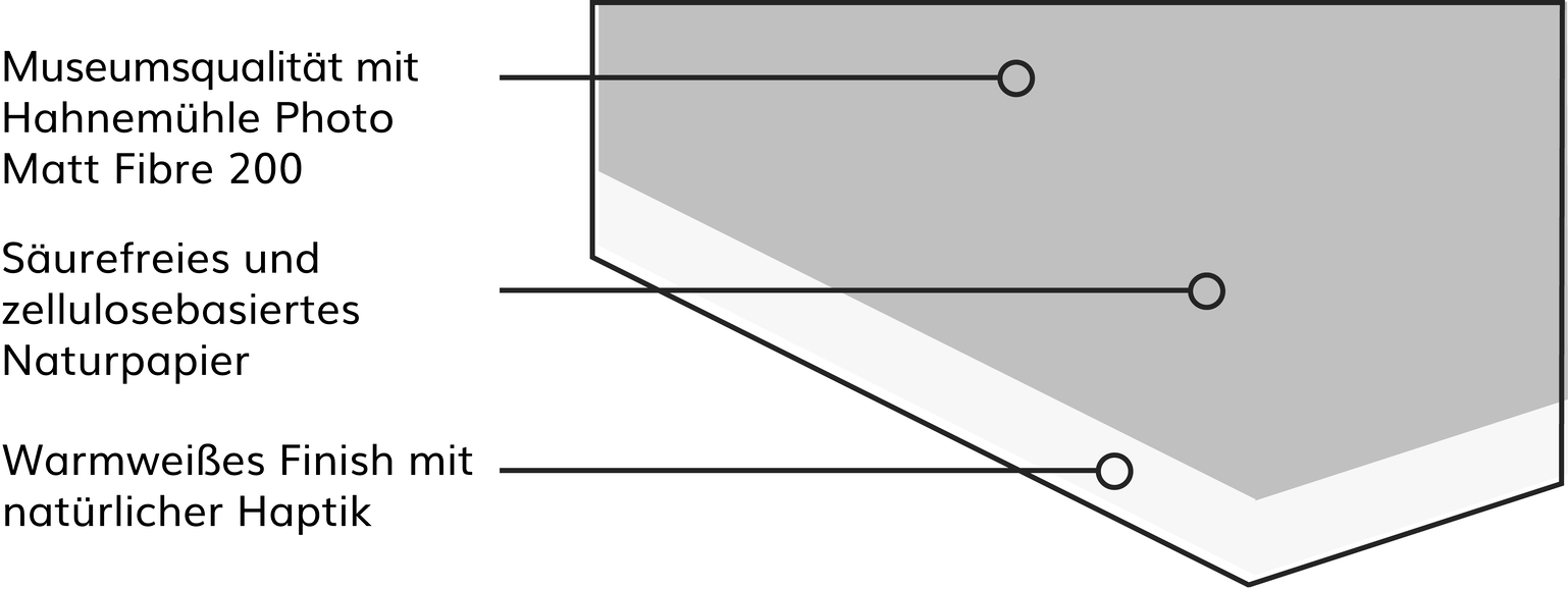 Als Liebhaber*in hochwertiger Kunstdrucke wirst Du mit unserem Fine Art Papier von Hahnemühle, dem Photo Matt Fibre 200, voll auf Deine Kosten kommen. Photocircle Fine Art Drucke sind eine bombensichere Kombination aus erstklassiger Drucktechnologie und einem 200 g/m² festen Fine Art Papier aus 100% Zellulose. An diesen Prints wirst Du sowohl mit als auch ganz ohne Rahmen Deine Freude haben.